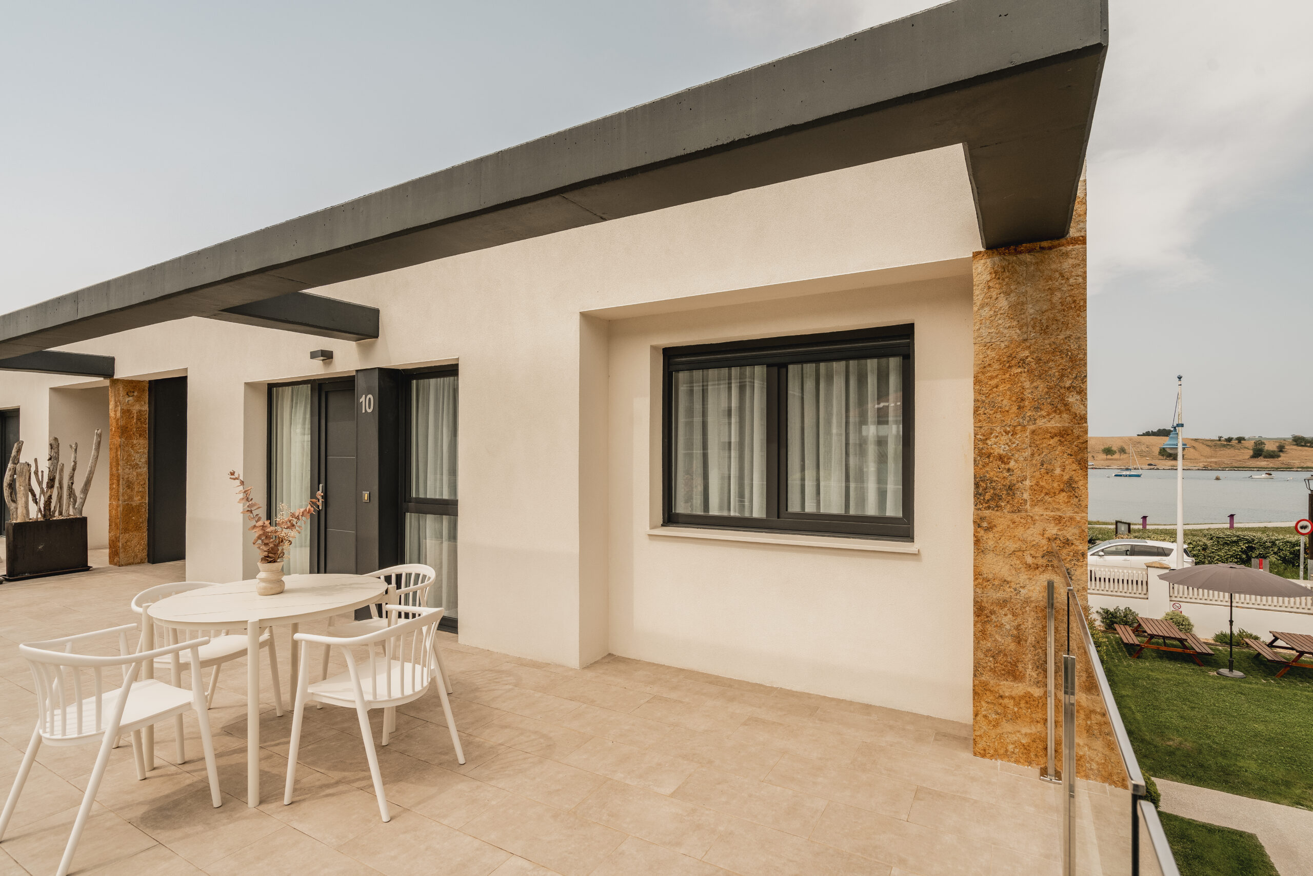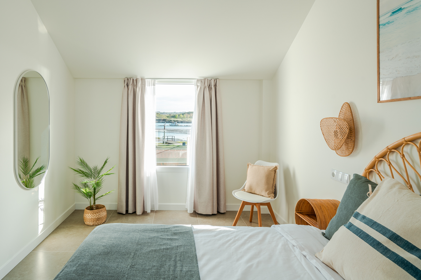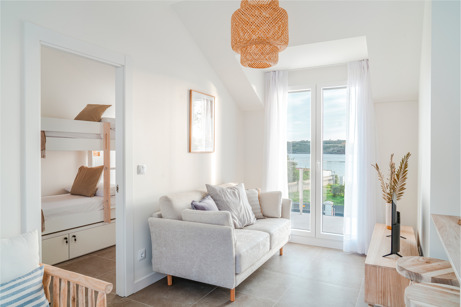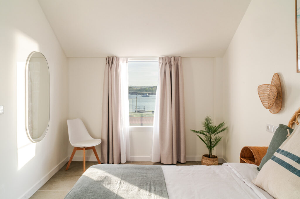 En la parte superior del nuevo edificio, con capacidad para 4 personas, cocina, salón comedor, baño y dos habitaciones, una con cama de matrimonio y otra con dos literas. Balcón con sillones y vistas a la playa. Amplia y soleada terraza, con mobiliario exterior.