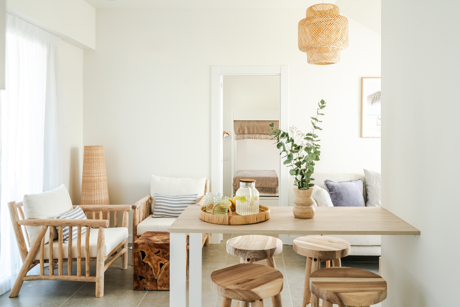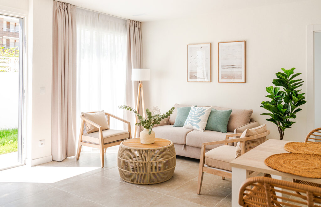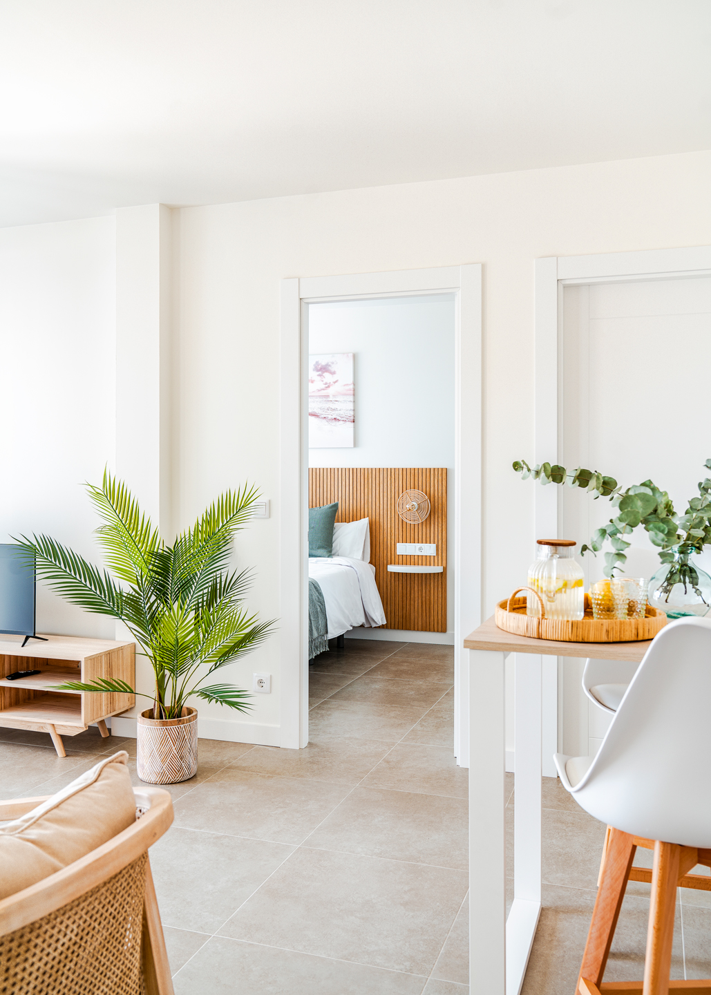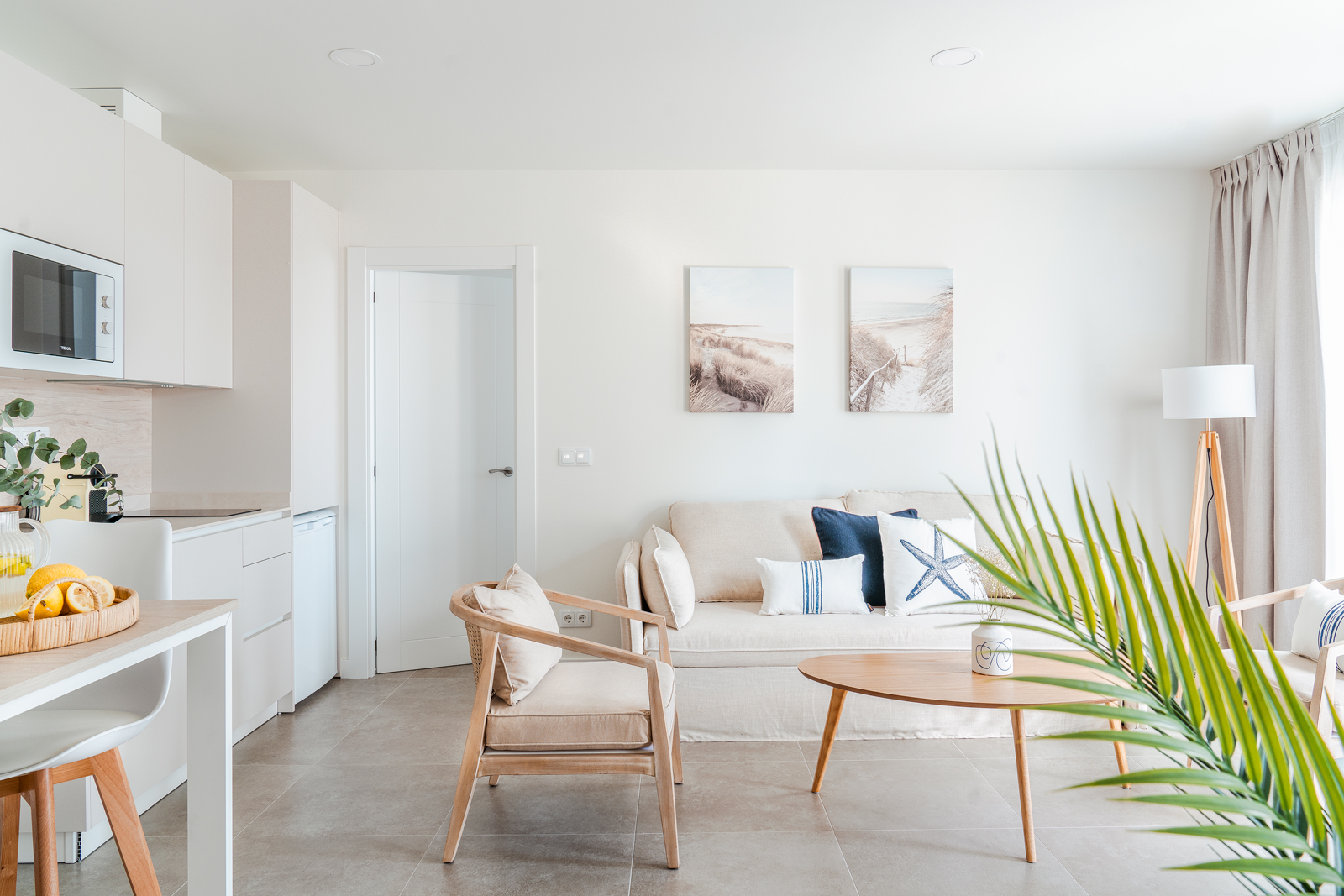 En la parte superior del nuevo edificio, con capacidad para 4 personas, cocina, salón comedor, baño y dos habitaciones, una con cama de matrimonio y otra con dos literas. Balcón con sillones y vistas a la playa. Amplia y soleada terraza, con mobiliario exterior.