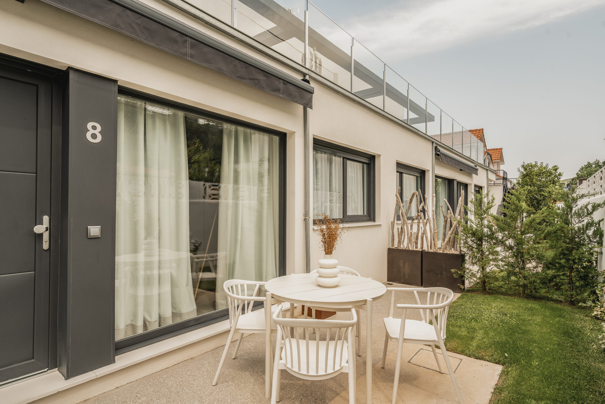 En la parte trasera del nuevo edificio, con capacidad para 5 personas, cocina, salón – comedor, baño y dos habitaciones, una con cama de matrimonio y otra con 2 camas individuales, más un sofá cama en el salón. Dispone de jardín propio con mobiliario exterior y toldo. Calefacción y Aire acondicionado.